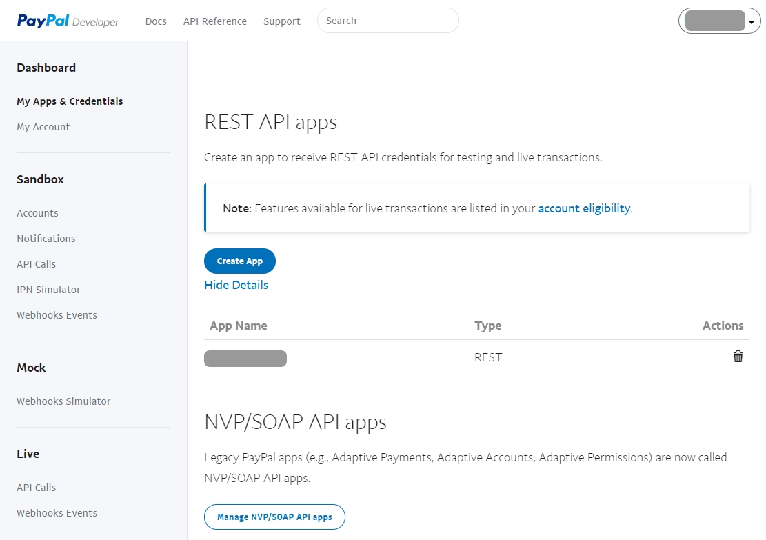 Enable PayPal payments and paste in your "Client ID" and "Secret" key from the PayPal dashboard